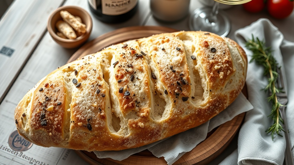 Profesyonel sunum için, ciabatta’yı tahta bir kesme tahtasında sunabilirsiniz. Ekmeğin çıtır kabuğu ve yumuşak iç yapısı, görsel olarak çekici bir kontrast oluşturur. Yanında, küçük bir kaseye extra virgin zeytinyağı, başka bir kaseye deniz tuzu ve taze öğütülmüş karabiber koyabilirsiniz. Konuklar, ekmeği daldırarak yiyebilirler.