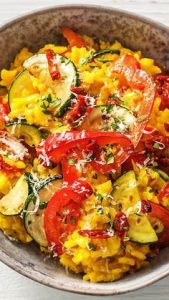 - Sebzeler: Taze sebzeler, hem renk hem de besin katkısı sağlar. Domates, bezelye veya ıspanak tercih edilebilir.
